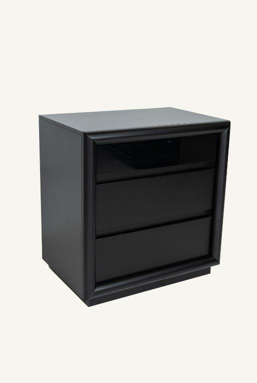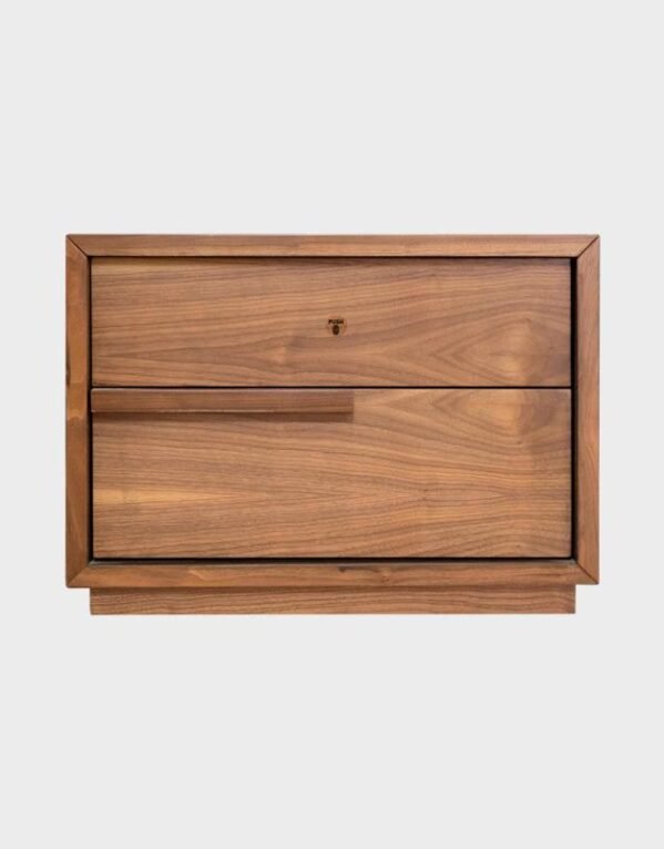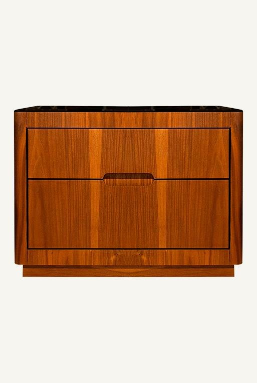 Buró hecho con madera nogal y con una cubierta de cristal templado ahumado. Ideal para añadir un toque moderno y sofisticado a tu dormitorio.