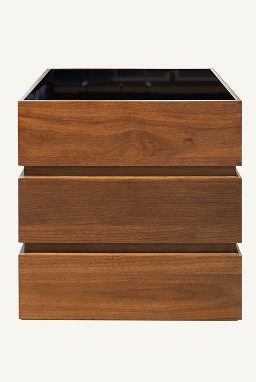 Hecha de parota sólida con cubierta de cristal templado ahumado, ofrece una superficie resistente y elegante para su sala o estudio. La estantería abierta debajo proporciona espacio adicional de almacenamiento o exhibición.