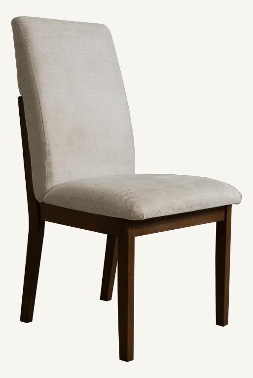 Silla de comedor hecha con madera nogal, tela circonia color blanco.