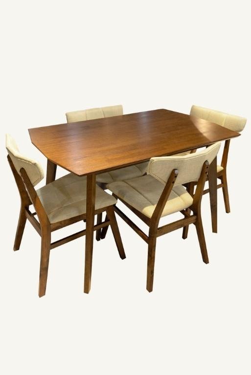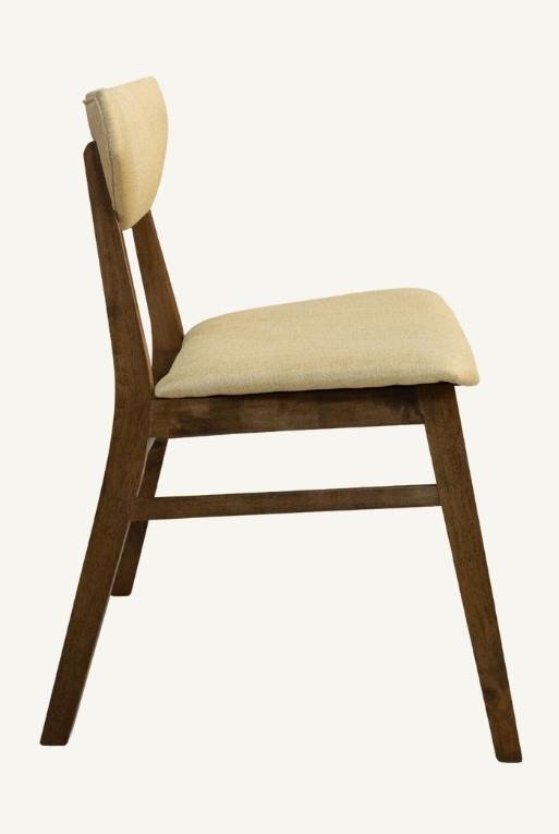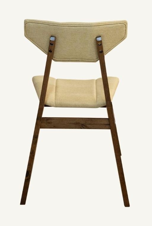 Silla de comedor hecha con madera nogal y tela circonia amarilla.