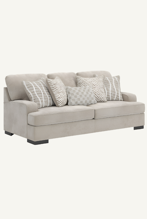 El sofá Sara Rose combina estilo y durabilidad con su estructura reforzada, cojines reversibles de alta resistencia y base tipo plataforma que ofrece soporte uniforme. Tapizado en tela 100% poliéster versátil y acompañado de cojines decorativos, mantiene un acabado impecable con el tiempo, mientras sus patas en acabado madera le dan un toque moderno y elegante.